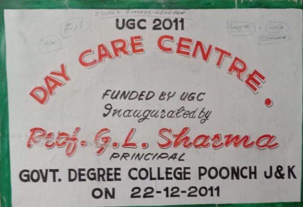 A UGC funded day care centre has been established in the residential complex of the college for the care of the children/wards of the staff.